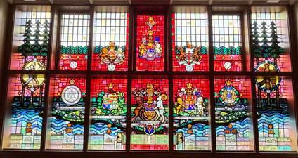 The tour concluded on the second floor with a look at the Rogers Window, installed in 1990. This stained-glass piece celebrates British Columbia’s role as a parliamentary democracy within a constitutional monarchy.